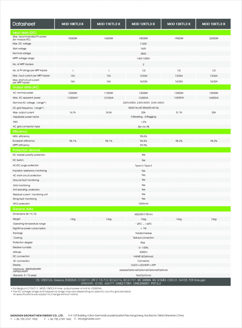 Biến tần hòa lưới 3 pha Growatt MOD 15KTL3-X