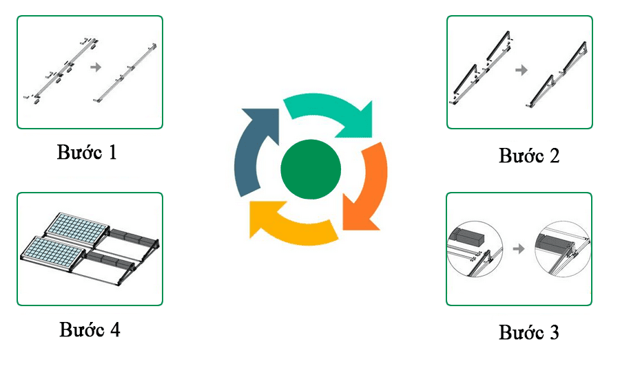 Dưới đây là các bước triển khai và quy trình lắp đặt hệ thống điện năng lượng mặt trời áp mái hình tam giác:
